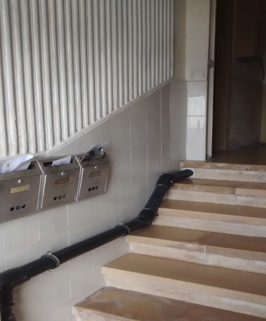 2. Inmueble ubicado en la calle Portell, 36. Se compone de planta baja y tres pisos de altura, con frente a la calle Coll del Portell, barriada de Vallcarca, de la sección de Horta de Barcelona, con una superficie para cada planta de sesenta y siete metros, ocho decímetros cuadrados, destinadas a una sola vivienda en cada planta, o sea, cuatro viviendas en total; edificándose sobre una porción de terreno que mide una superficie de setenta y un metros, noventa y tres decímetros cuadrados, estando la superficie no edificada destinada a patio. Dos de las cuatro viviendas se encuentran totalmente reformadas.