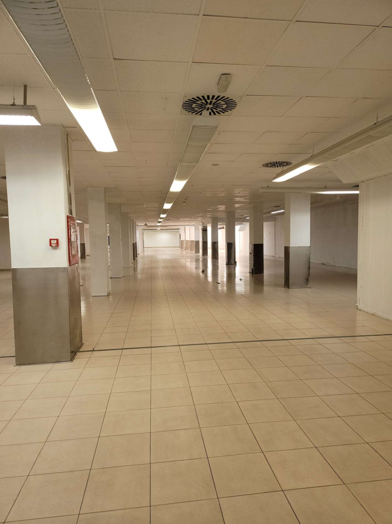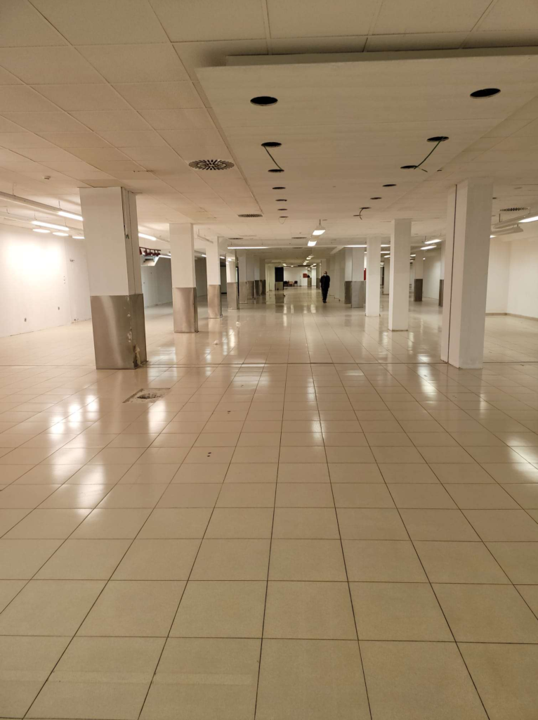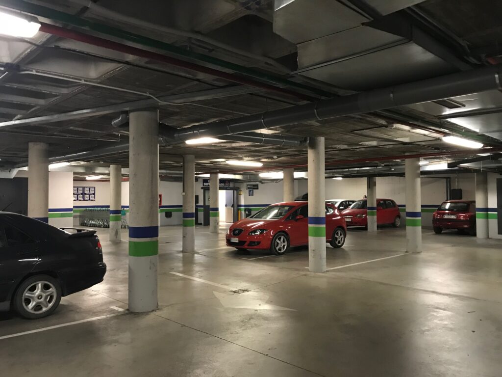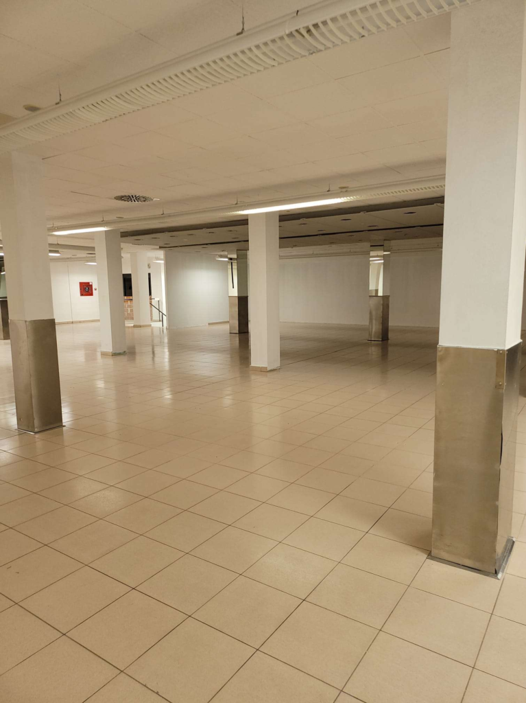 El local lleva anexa una zona de aparcamientos en planta sótano con una superficie construida de 1.257,60 m² y un cuarto de instalaciones en la primera planta, con una superficie de 56,95 m², con entrada desde el local en planta baja.