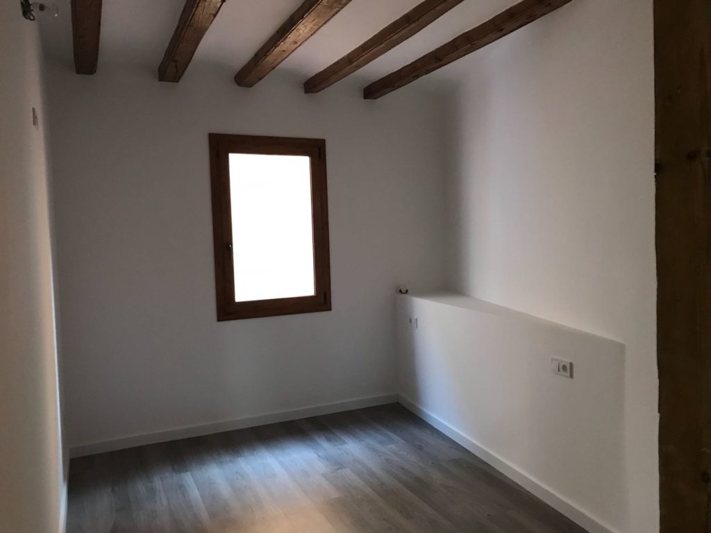 Piso espectacular, en la zona del Raval. Reformado íntegramente, 98 m2. Consta de dos dormitorios y dos baños; comedor, lavadero, balcón. Dispone de aire acondicionado con bomba de calor.